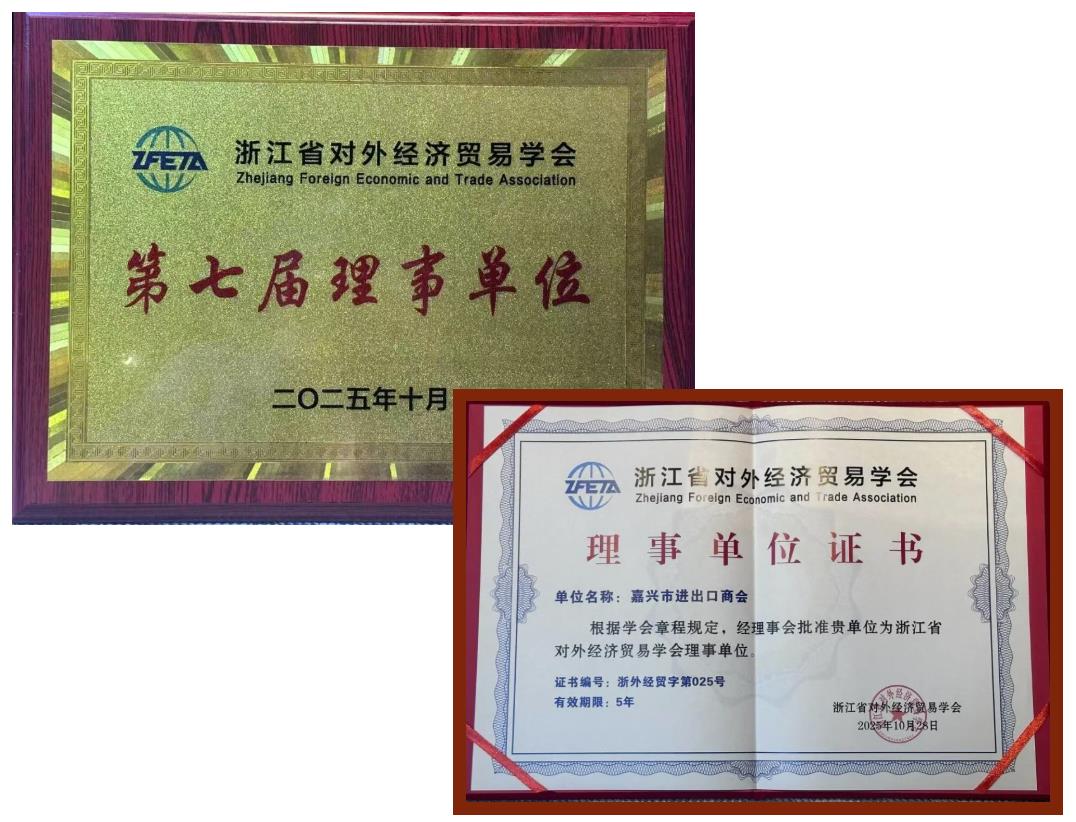 嘉兴市进出口商会作为学会新一届理事单位全程参会,积极履行理事职责,深度融入大会各项议程。 未来,嘉兴市进出口商会将以省对外经济贸易学会理事单位为重要纽带,持续深化与全省政府部门、商协会、龙头企业的联动,聚焦三大服务方向: 01链接省级政策资源 及时传递商务、财政等实用信息,为嘉兴企业搭建“走出去、拓市场”的合作桥梁; 02搭建跨区域合作平台 通过举办各类活动,对接全省优质商协会、外综服企业及龙头企业,为嘉兴企业拓展合作半径;