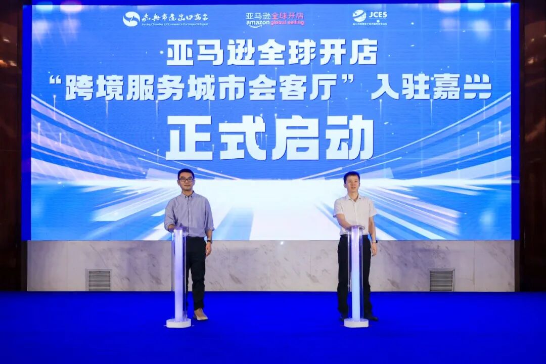 亚马逊全球开店嘉兴跨境服务会客厅由嘉兴市商务局黄小晓副局长与亚马逊全球开店杭州办公室负责人RichardChen共同启动,标志着嘉兴成为继义乌之后,省内第二个正式启动亚马逊全球开店跨境服务城市会客厅的城市。